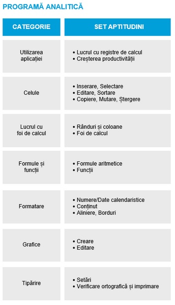 · Certifică cele mai bune practici în utilizarea eficientă a unei aplicații de calcul tabelar.